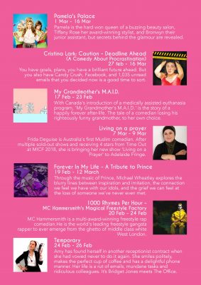 Call this guy is creating a superhub in the Amazing ‘A Club’ space for the 2019 Adelaide Fringe with lots of Half tix and Fringe membership shows, so everyone can access Adelaide’s Mad month.