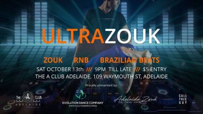 Posted on September 20, 2018April 29, 2019 by KerryUltra Zouk Adelaide Biggest One Night Zouk Party hits The Aclub October 13th tickets on sale now